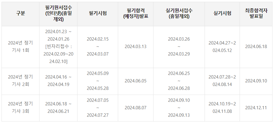 일단 2024년 정기 기사 1회의 필기 접수 기간은 지났고